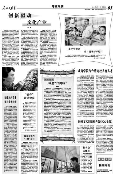 本报武夷山电 (代天喜)福建武夷学院开展与台湾高校的交流与合作,通过相互学习与借鉴,推进高等教育的内涵建设和改革创新,共育应用型人才。