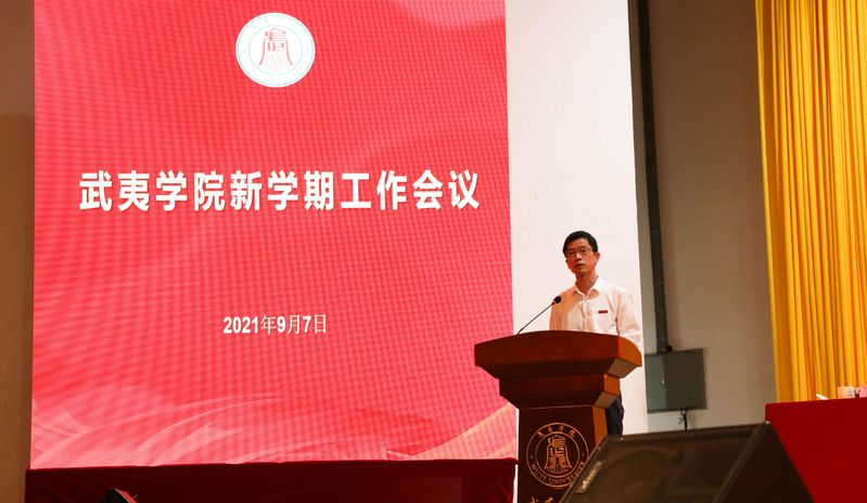吴承祯强调,武夷学院正处于继往开来、接续奋斗,一流引领、提升内涵的新阶段,要坚持以习近平新时代中国特色社会主义思想为指导,牢牢把握正确的办学方向,紧盯重点目标任务,找准工作着力点和突破口,以新状态体现新担当新作为。他代表校党委就做好新学期的工作提出六点意见:一要坚持加强党的领导,确保学校始终沿着正确方向前进。要把思想政治建设摆在首位,推进党史学习教育走深走实,加快编制实施“十四五”规划,精心组织上好“开学第一课”,全面落实意识形态工作责任制。二要践行立德树人使命,全方位服务学生健康成长成才。要推进思政工作守正创新,完善学生服务保障机制,全力推进毕业生充分就业。三要贯彻好新发展理念,促进学校各项事业高质量发展。要在申建硕士学位授权单位、做好专业认证工作、推进一流专业与课程建设、加强人才队伍建设、服务地方经济社会发展、提升对外开放办学水平、推进新时代教育评价改革上下真功夫。四要持续强化法治思维,推进学校治理体系不断优化。要着力提升学校治理能力水平,持续推进“放管服”改革,进一步推进民主管理,提升自我管理、自我发展、自我约束的能力和水平;着力建设平安和谐文明校园,压实校园安全主体责任,增强师生安全意识和防范能力,确保校园和谐稳定。五要坚持高标准严要求,筑牢校园疫情防控严密防线。要清醒认识存在问题短板,抓细抓实新生报到工作,从严落实各项防控措施,压紧压实疫情防控责任。六要压实管党治党责任,推动全面从严治党向纵深发展。要严密党的组织体系,传承党的优良作风,营造良好政治生态。