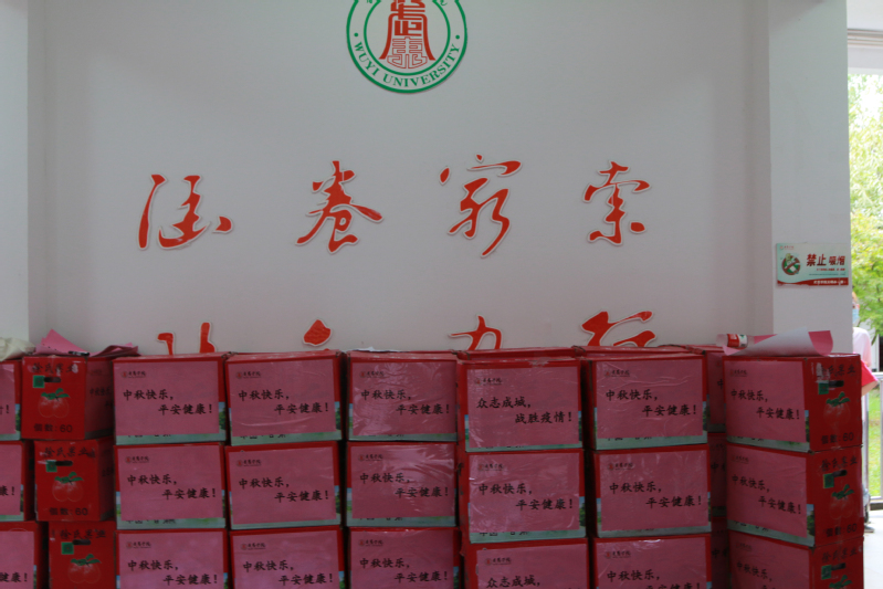 由于当前的疫情,今年武院学子的中秋显得尤为特殊。佳节将至,为表示对广大同学真挚热忱的关爱与祝愿,学校为每位同学精心准备了一块月饼和一个苹果,希望大家在学校都能感受到家的温暖,祝愿同学们团圆美满、平安顺遂。