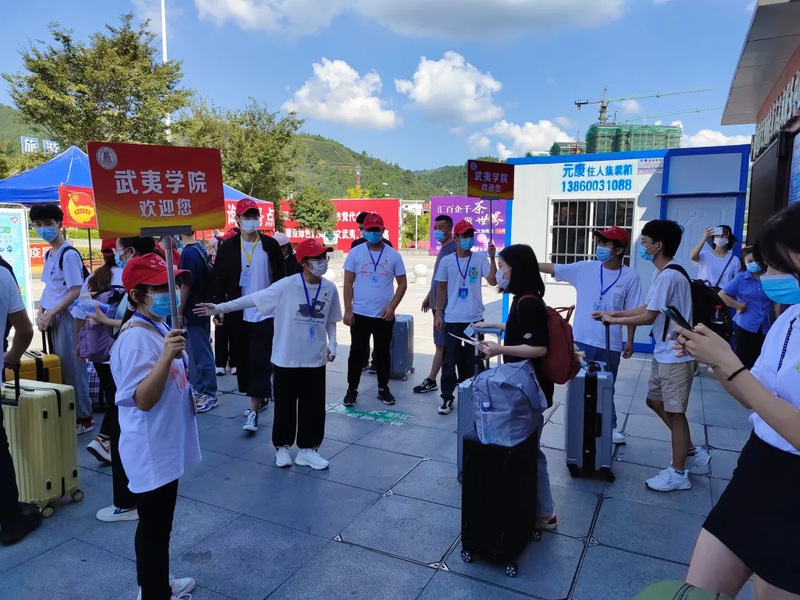 在学校领导的关怀下,迎新各项工作在有条不紊地进行中。迎新志愿服务队出征前夕,为提升志愿者的迎新服务能力,校团委召开了迎新志愿者岗前培训大会,对志愿者在疫情防控、岗位职责等方面进行培训。校外迎新站点分别设在南平市站和武夷山北站。校内设迎新大本营,在东、西大门,校园主干道沿线6个校内公交站点设立学生咨询服务点,并组建了校内流动志愿者服务队。
