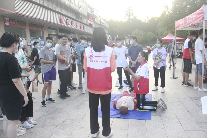 宣传急救知识,普及救护技能。校红十字会始终以“人人学急救,急救为人人”为应急救护知识普及的宣传理念,定期开展急救角活动,向师生普及心肺复苏和创口包扎等知识和技能。秋季开学初,响应学校疫情防控办下达的校园新冠肺炎疫情防控工作要求,开展“校园急救角”宣传活动,累计培训120人次,急救实操观摩人数逾1500人次。