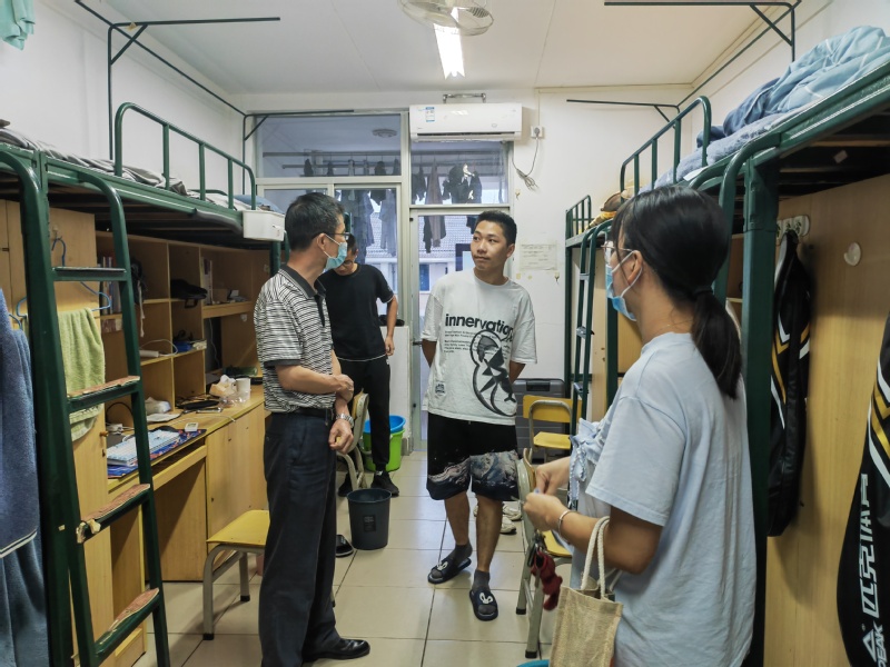 10月10日,校党委副书记、校长吴承祯,党委委员、副校长郑细鸣深入学生宿舍,看望慰问因疫情延期报到的新生,与他们面对面交流,为刚入学的新生送关怀和温暖。