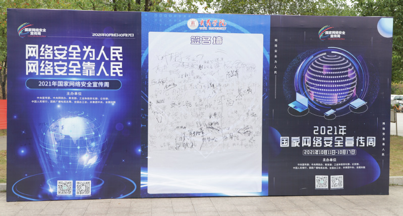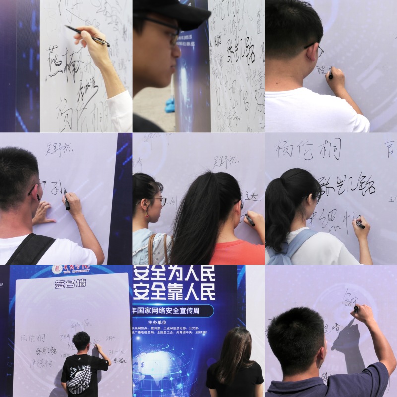 活动期间,现场设立“国家网络安全宣传周”展板、签名墙,竖起道旗,围绕“网络安全为人民 网络安全靠人民”主题,引导师生参加签名墙活动,用行动来拥护和践行“网络安全”,积极营造风清气正的网络空间,保障师生在网络空间的合法权益,坚决做到“不信谣、不传谣”“争做一名好网民”,共同营造良好的网络安全环境。