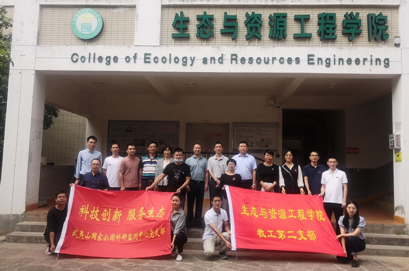 为了深入学习贯彻习近平生态文明思想,落实“绿水青山就是金山银山”的发展理念,充分发挥党建共建、优势互补、资源共享和基层党组织在生态文明建设中的战斗堡垒作用,推动专业服务延伸,促使优质资源下沉,互助共赢提升,实现党建引领促发展的新格局。10月13日,校党委副书记、校长吴承祯带领生态与资源工程学院教工第二党支部党员与武夷山国家公园科研监测中心党支部党员联合开展主题党日活动。武夷山国家公园科研监测中心负责人,生态与资源工程学院党政负责人和相关师生参加活动。