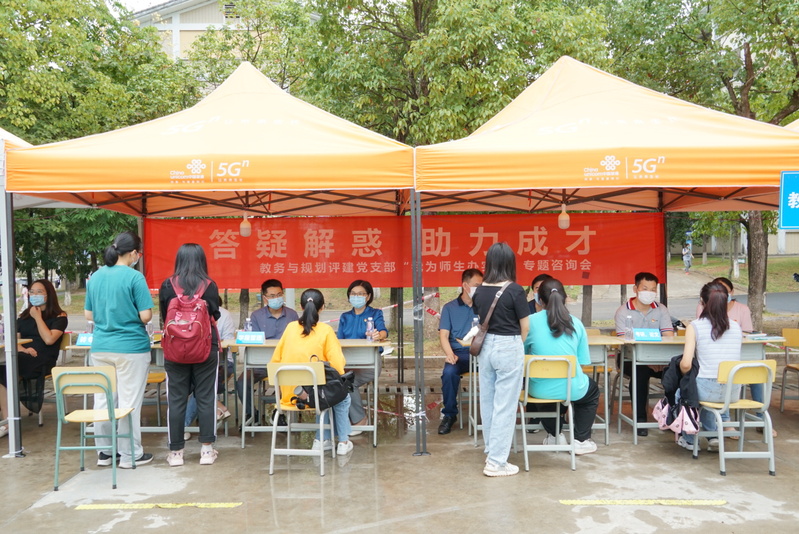 为充分发挥基层党组织战斗堡垒作用和党员先锋模范作用,开展好“我为师生办实事”,进一步推进党史学习教育走深走实。10月14日下午,教务与规划评建党支部在瑞樟篮球场开展“答疑解惑 助力成才”专题现场咨询会。