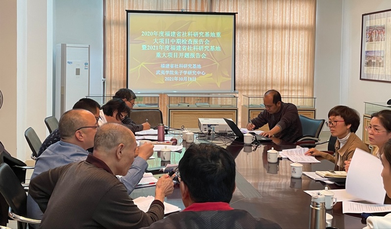 10月18日下午,基地重大项目研讨会在朱子学研究中心会议室召开。校党委委员、副校长廖斌出席会议,朱子学研究中心首席专家、研究员张品端,各研究方向负责人及基地重大项目负责人等20多位专家参加会议。会议由科研处副处长邓家耀主持。