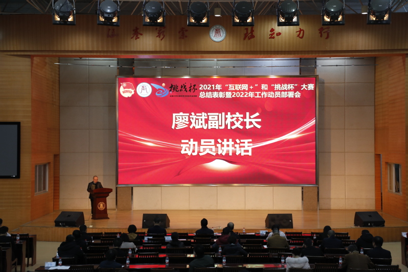 11月26日下午,我校召开2021年“互联网+”和“挑战杯”大赛总结表彰暨2022年工作动员部署会,校领导陈金瑞、张大烛、廖斌出席大会,教师工作部、学生工作部、教务处、科研处、财务处等职能部门相关负责人,各二级学院党政负责人参加会议。