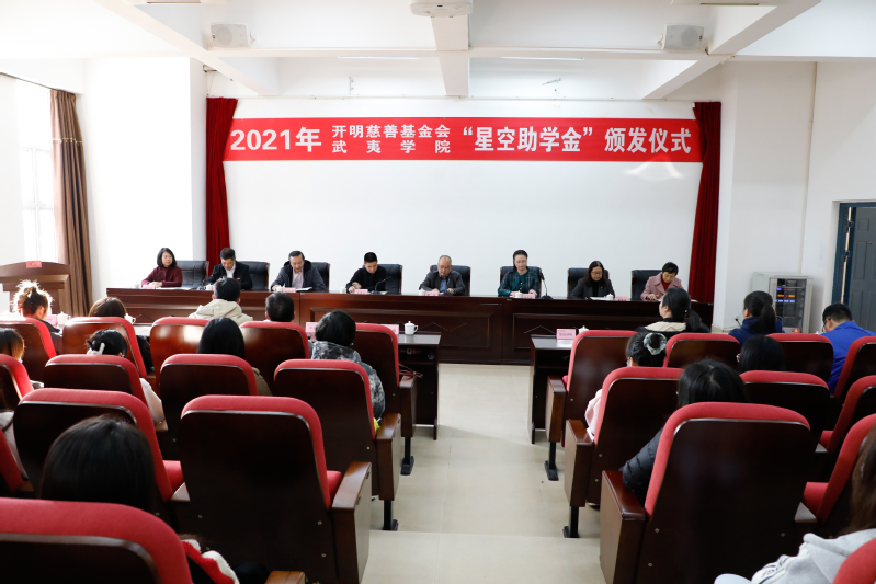 12月9日下午,开明慈善基金会福建星空专项基金“星空助学金”颁发仪式在我校举行。民进福建省委秘书长林龙金,“星空助学金”项目捐资方——福建新思路集团董事长、武夷学院董事会常务董事、民进中央委员、福建民进经济界联谊会会长王东平先生,校党委委员、副校长廖斌出席会议。民进福建省委、福建民进经济界会员联谊会嘉宾,校董事会、统战部、学生工作部等相关部门负责人,各学院分管学生工作领导以及受资助学生参加颁发仪式。学生工作部部长刘廉明主持会议。
