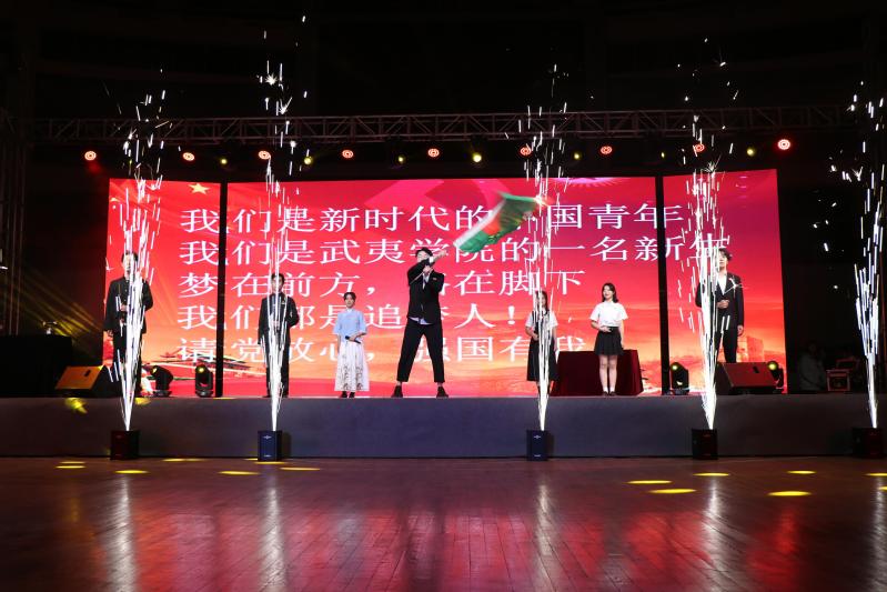 12月12日晚,我校2021年迎新生文艺晚会在体育馆隆重举行。校党委委员、副校长廖斌,中国建设银行武夷山支行副行长叶敏珍,相关部处、二级学院团委负责人和师生代表1500余人一同观看了演出。演出同时在校学生会官方微博、B站等平台同步直播,线上累计观看达1.5万余人次。