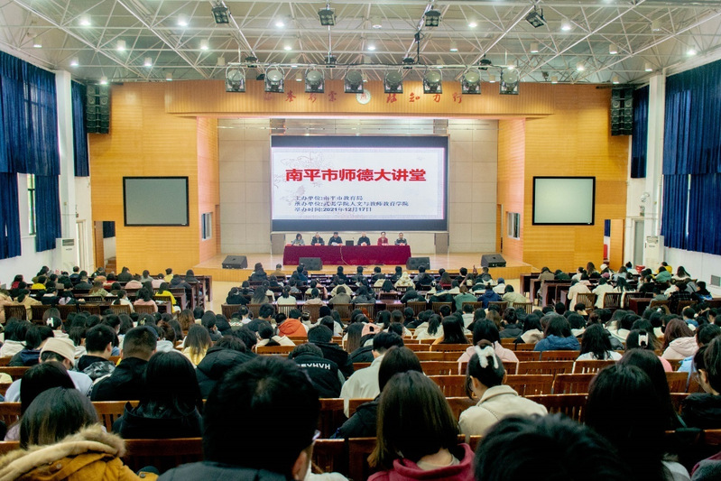 12月17日下午,由南平市教育局主办、我校人文与教师教育学院承办的南平市师德大讲堂武夷学院专场讲座在同文报告厅举行。南平市教育局(教工委)组织部人事科负责人、人文与教师教育学院主要负责人出席,600余名师范类专业师生参加讲座。