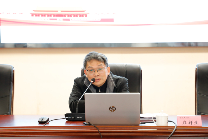 12月30日下午,校党委书记庄祥生在聚贤楼圆形会议室为全体“青马班”学员作党的十九届六中全会精神宣讲报告。报告由校团委书记王波主持,本期“青马班”全体学员和校院两级团委负责人共同聆听报告。
