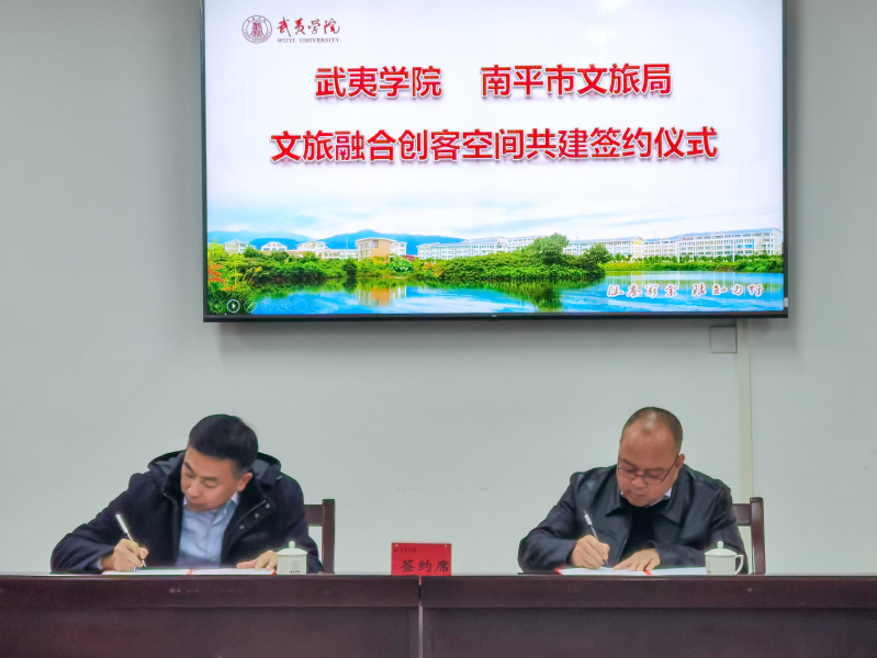 1月4日,南平市旅游宣传营销中心和文旅融合创客空间在我校正式挂牌成立。南平市人民政府副市长林湫、武夷山市人民政府市长谢启龙为营销中心揭牌,武夷学院党委委员、副校长廖斌主持揭牌仪式。南平市文旅局局长王文谦以及南平市武夷山市相关部门领导、重点文旅企业代表参加揭牌仪式。揭牌仪式后,南平市、武夷山市与我校团委、旅游学院、文教学院和商学院就如何统筹市县校三方文旅宣传营销力量等问题进行深入交流座谈,在大学生直播带“旅”、旅游行业人才培养、文旅融合创新实践、课题攻关等方面建立合作,会上王文谦局长与廖斌副校长签订文旅融合创客空间共建协议。