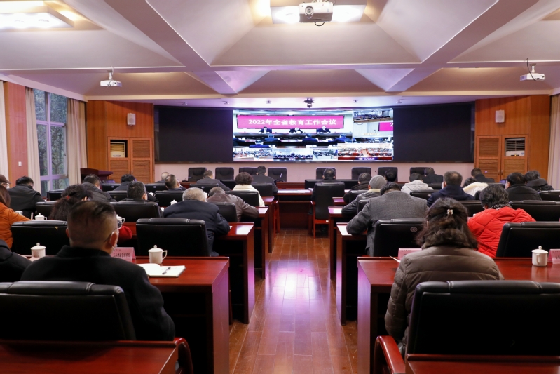 2月18日下午,我校在圆形会议室组织收听收看2022年全省教育工作会议暨春季学期开学工作视频部署会。省委教育工作领导小组秘书组组长,省委教育工委书记,省教育厅党组书记、厅长林和平出席会议并讲话。校领导庄祥生、吴承祯、陈金瑞、陈宗荣、张大烛、廖斌、郑细鸣,各部门负责人,各二级学院党政负责人参加会议。
