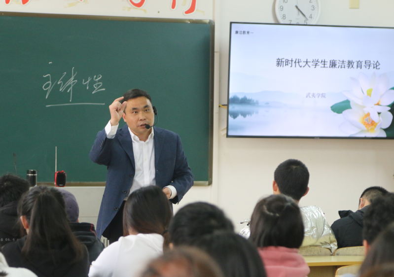 为切实做好新时代廉洁文化建设工作,推动廉洁文化进校园、进课堂、进头脑,近日,由校纪委牵头开设的《新时代大学生廉洁文化教育》选修课正式开讲。校纪委书记陈宗荣,校纪委委员,纪委综合室、纪检监察室、巡察审计办、马克思主义学院部分老师随堂听课。