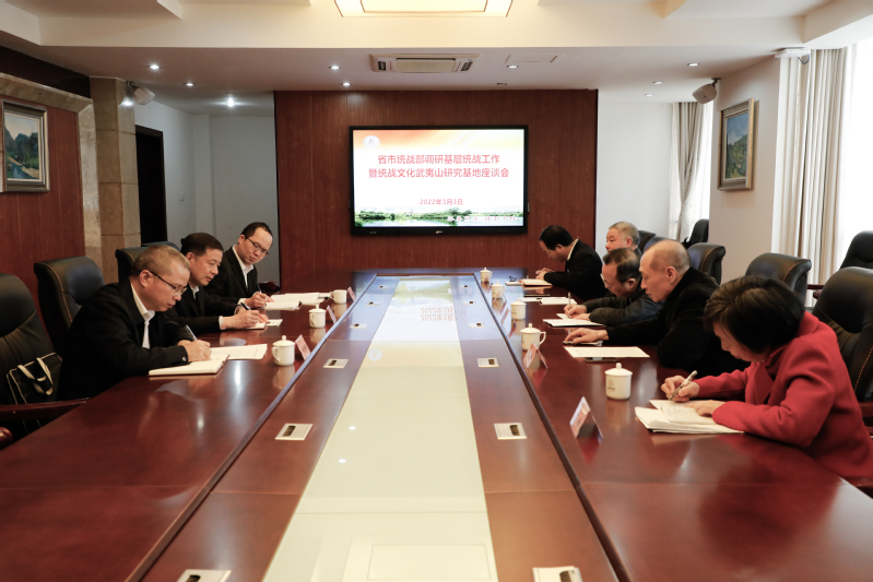 3月3日下午,省委统战部正厅长级干部高其兴一行到我校调研省统战理论研究会统战文化武夷山研究基地工作,与基地领导和专家学者进行座谈交流。校党委书记庄祥生、副书记陈金瑞陪同调研。