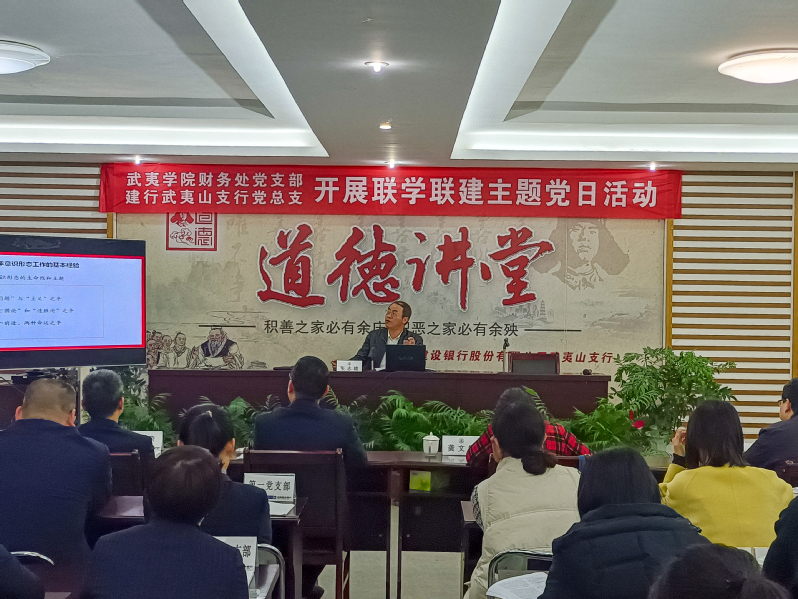 为进一步强化党员干部对意识形态工作极端重要性的认识,加强思想引领,筑牢思想防线,3月9日,我校财务处党支部与建行党总支开展联学活动,邀请马克思主义学院院长张志雄教授作题为“中国共产党百年意识形态工作历史经验”专题讲座。讲座在建行武夷山支行会议室举行,30余名党员听取讲座。