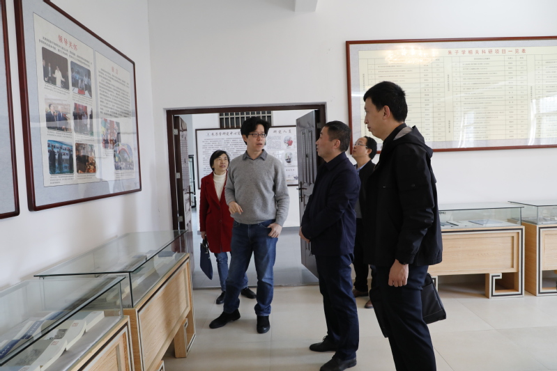陈培仁一行还实地察看了朱子学研究中心展厅,详细了解宋明理学、朱子学研究和文化交流情况,听取《战后台湾儒学研究》《朱子学与台湾社会文化意识研究》等国家社科基金项目的研究进展介绍。陈培仁对该中心的工作表示充分肯定,希望充分利用武夷山独特的人文优势和深厚的朱子文化资源,积极开展朱子学研究、文化交流和普及推广等工作,促进朱子理学的传承与发展;同时积极发挥朱子文化这一两岸共同文化品牌作用,深化两岸文化交流合作,厚植两岸同胞精神纽带,推动两岸融合发展。