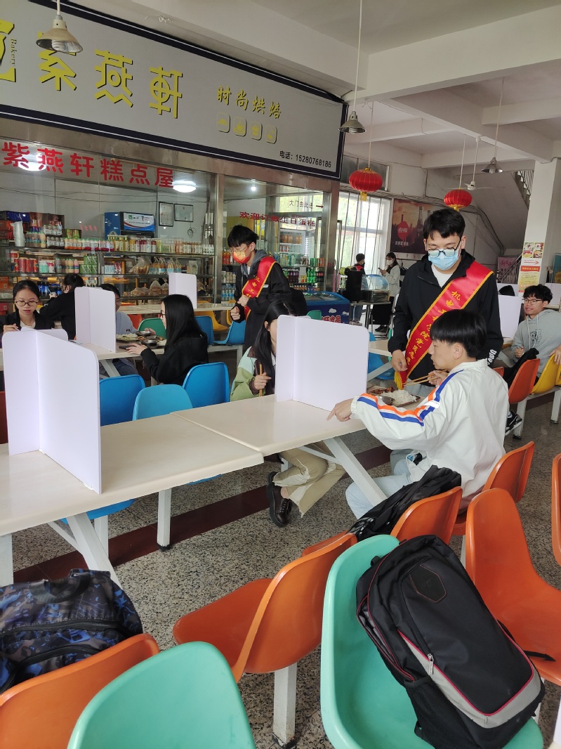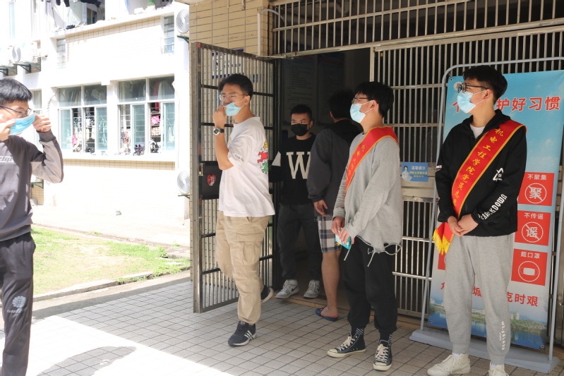 会后,党委书记龚建金带领学生党员志愿者突击队到宿舍、食堂等地,勇当“战疫排头兵”。3月17日,在瑞五教学楼一楼进出口处设立防疫督导点,对来往的同学与教职工进行督导,宣传疫情防控知识,用肩膀上的红绶带,为疫情防控拉出一条“安全防线”; 3月18日,在二期食堂组织宣导志愿活动,积极引导同学们饭前洗手、佩戴口罩、有序排队、同向就餐等,让党旗在战疫一线高高飘扬;3月19日,在瑞三和瑞五学生宿舍楼进行为期一个月的站岗督导,实时发出:出门必戴口罩,非必要不网购,做好个人防护等口号,积极彰显党员先锋精神。
