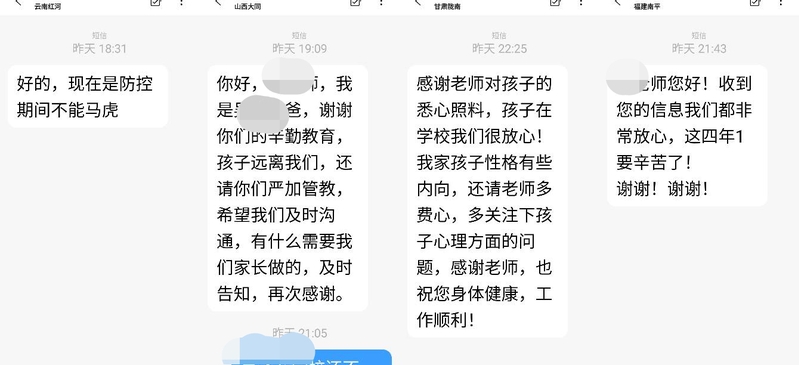 一、辅导员联系千名学生家庭,同心战疫。经过对相关工作重点的梳理和商讨,辅导员对毕业班和非毕业班学生家长的沟通要点进行了区分和强调,并采取短信、电话、微信等多种途径和家长取得了联系。