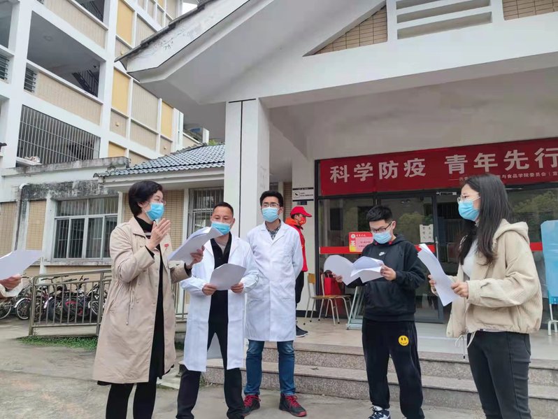 疫情当下,各二级学院闻令而动,迅速集结学生志愿服务组织,鼓励学生干部、党员加入“抗疫”志愿服务。志愿者们值守在教学楼和宿舍楼,开展疫情防控宣导,提醒学生佩戴口罩,加强个人安全防护,减少网购,不点外卖,做到人人都是疫情防控第一责任人。志愿服务队深入食堂、图书馆等公共场所,分发口罩、防疫宣传册,提醒食堂就餐隔位就座,保持安全距离,为学校取得疫情防控阻击战的胜利,践行青春使命,贡献青春力量。