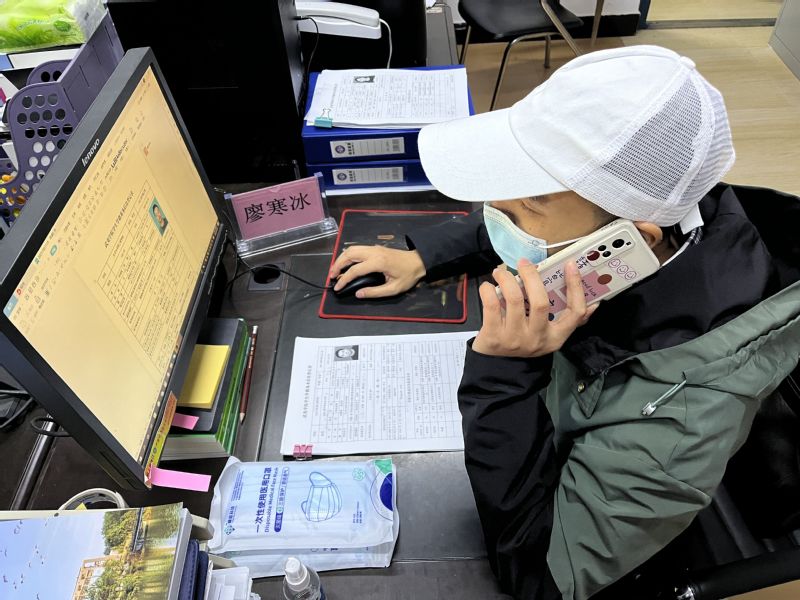 白天:廖寒冰加入生态与资源工程防疫宣传志愿服务队、党员志愿服务队、辅导员志愿服务队,深入学生宿舍开展网课督查、外卖快递督查、宿舍卫生督查、核酸抽检督查等活动,将发现的问题立即整改。他通过线上和线下积极宣传疫情防控知识,提醒学生戴口罩、一米线、常通风、非必要不网购、加强锻炼……除疫情防控工作外,他还要完成辅导员的其他日常工作。