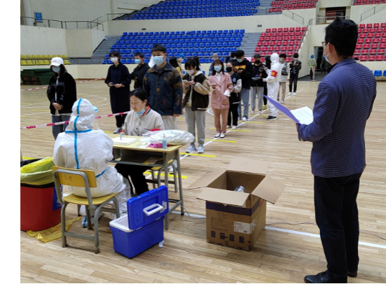 进入核酸检测站点,做疫情防控的织密者。核酸检测工作的全员化和常态化是疫情防控的基础,学院辅导员织密防控线,织牢防控网,每天的核酸检测和每次的抽检工作,辅导员都到现场,做好秩序引导,做好检测登记,确保应检尽检,全员必检。