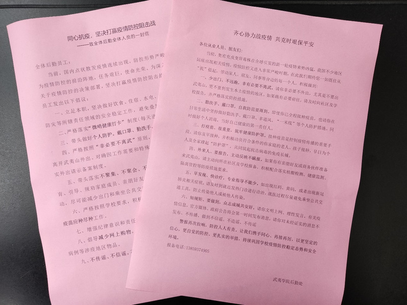 后勤管理处发出的“倡议书”和“一封信”