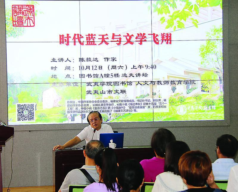 2019年10月12日,邀请省文联副主席、省作协主席陈毅达作《时代蓝天与文学飞翔》讲座。(来源:武夷学院)