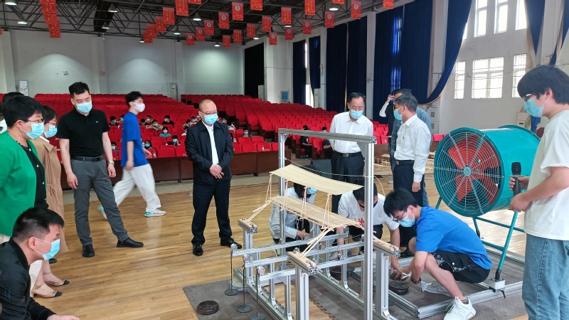 校第十三届科技节组委会常务主任、校党委副书记陈金瑞宣布土建学院和海峡成功学院本届科技节开幕,并为本届结构模型设计大赛鸣锣开赛。开赛后,与会领导和嘉宾现场观看并指导比赛。