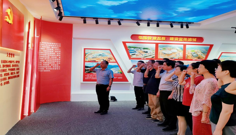 在廖俊波家风家教展示馆,机关党员干部重温入党誓词,面对鲜红的党旗,大家表示要不忘初心,铭记誓词,践行誓词,为党旗增辉添彩,努力当好推动一流应用型大学建设的排头兵。