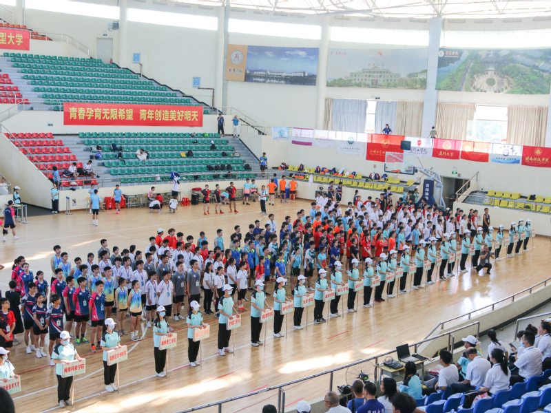 7月13日上午,福建省第十七届运动会(大学生部)跳绳比赛在我校体育馆开幕。校党委委员、副校长张大烛,福建省大学生体育协会跳绳分会顾问、本次比赛仲裁徐瑞芳教授,福建省大学生体育协会跳绳分会副会长、本次比赛仲裁林秀春副教授,福建省大学生体育协会跳绳分会秘书长、跳绳国家级裁判、本次比赛总裁判长梁建锋副教授出席开幕式。