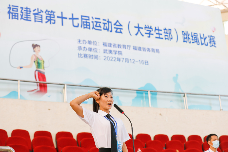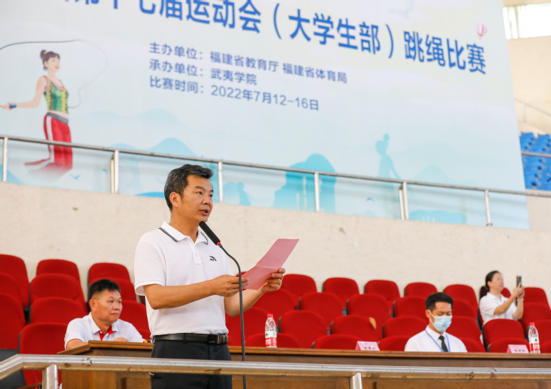 最后,张大烛宣布福建省第十七届运动会(大学生部)跳绳比赛开赛。