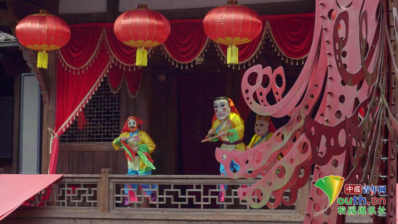▲图为邵武市和平古镇和平戏院的传统“傩戏”表演。