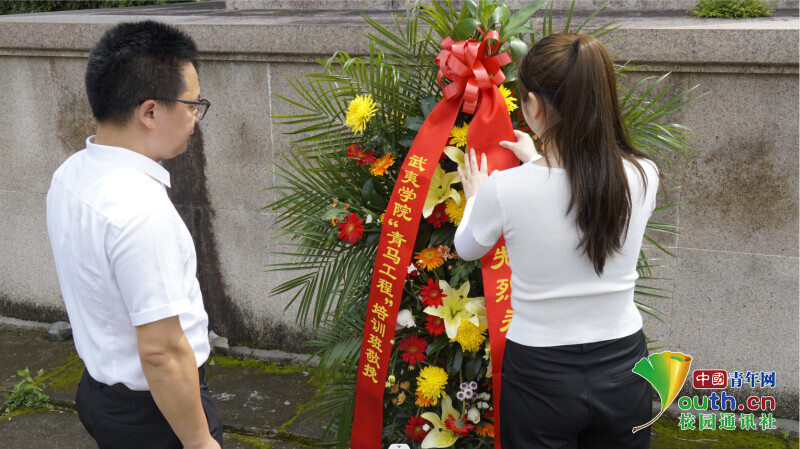 ▲图为实践队成员向闽北革命烈士纪念碑献花。