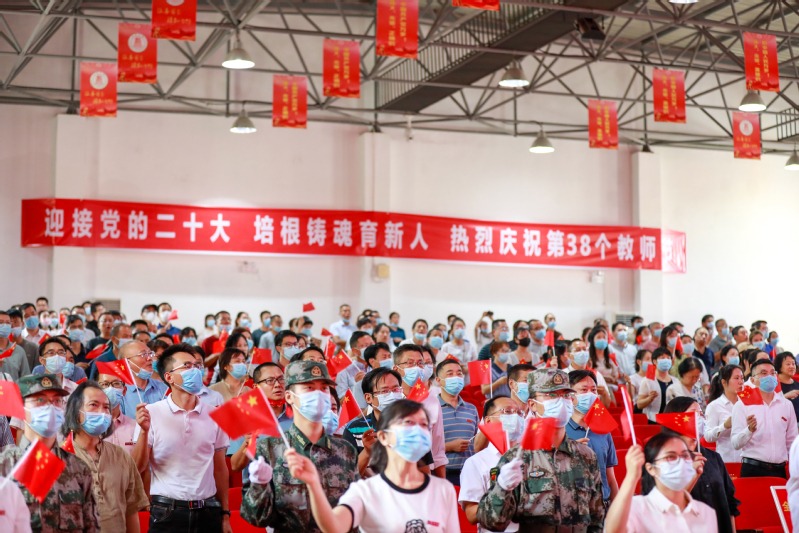 迎接党的二十大,培根铸魂育新人。9月8日下午,我校在学生活动中心隆重举行第38个教师节庆祝大会。校领导庄祥生、吴承祯、杨昇、陈宗荣、廖斌、郑细鸣出席大会。大会由校党委副书记陈金瑞主持。