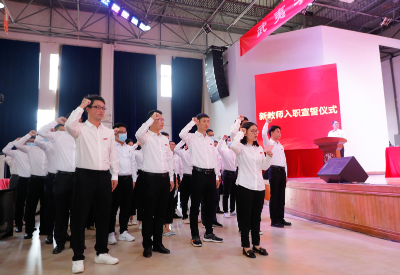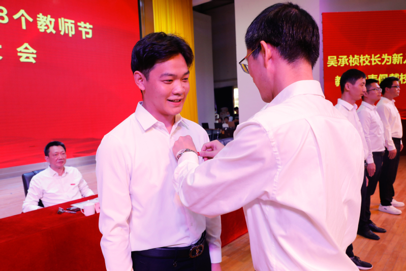 会上,举行了退休教师荣休仪式、从事教育工作30年教师表彰仪式、新教师入职宣誓仪式。校领导为荣休教师、从事教育工作30年教师代表颁发纪念品,为新入职教师代表佩戴校徽。荣休教师代表、体育教学部教授张国林,从事教育工作30年教师代表、圣农食品学院副院长范俐,新入职教师代表、机电工程学院教师陈怀民在会上发言。