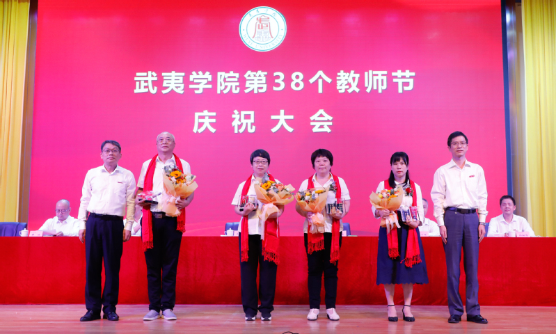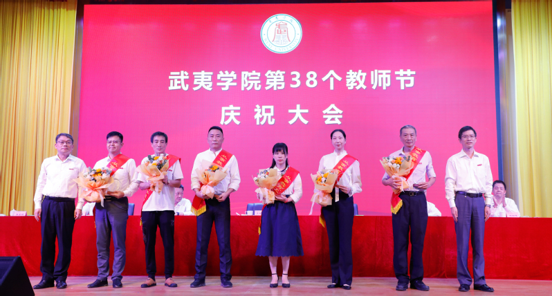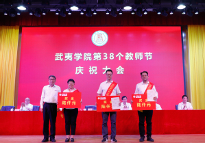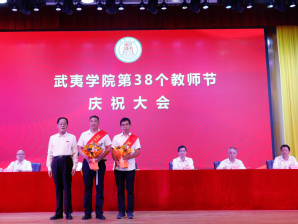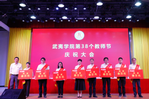 校领导分别为2021—2022学年获得省级以上成果和荣誉教师,武夷学院优秀教师、先进教育工作者和优秀辅导员颁奖。