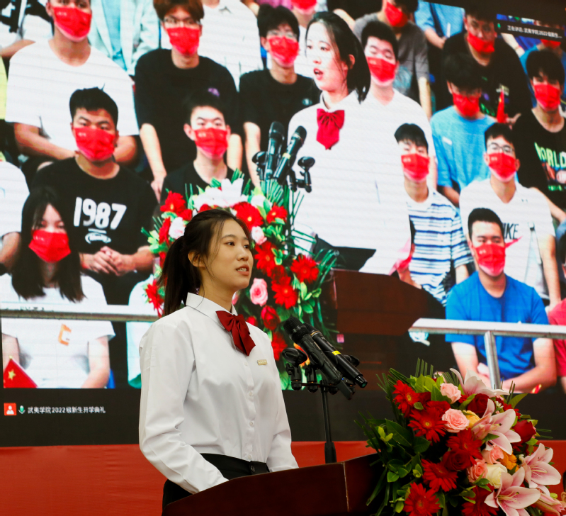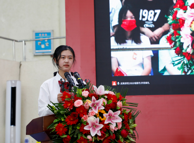 ▲新生代表、人文与教师教育学院2022级小学教育专业吴若妍同学发言