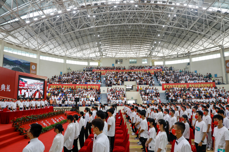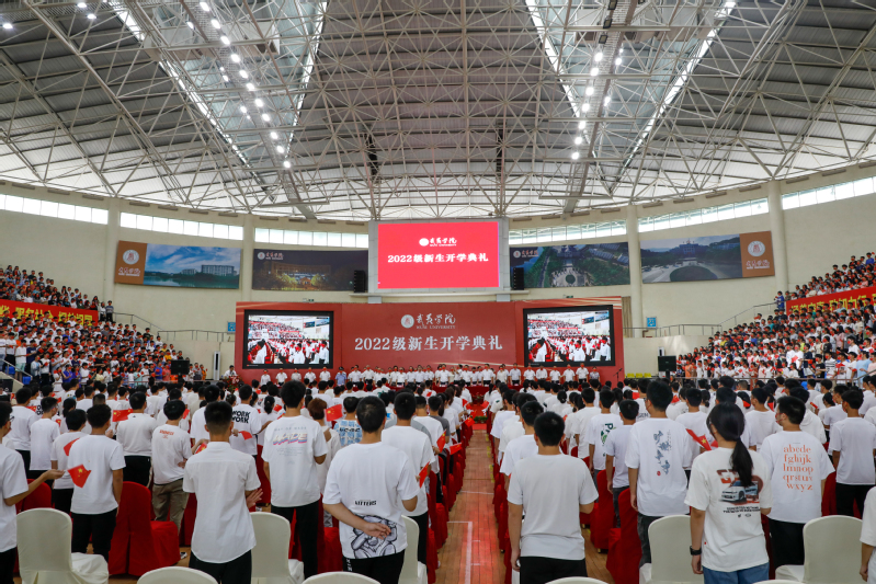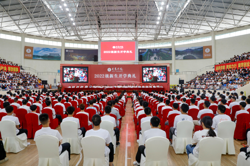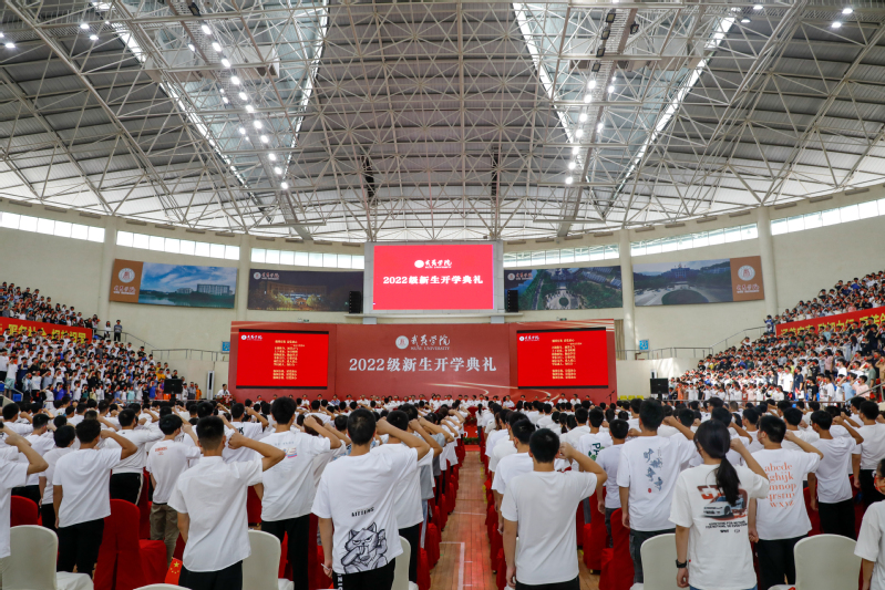 9月22日上午,我校隆重举行2022级新生开学典礼。本次典礼采取线上线下结合的方式举行,在体育馆设置主会场,学生活动中心报告厅设置线上分会场。
