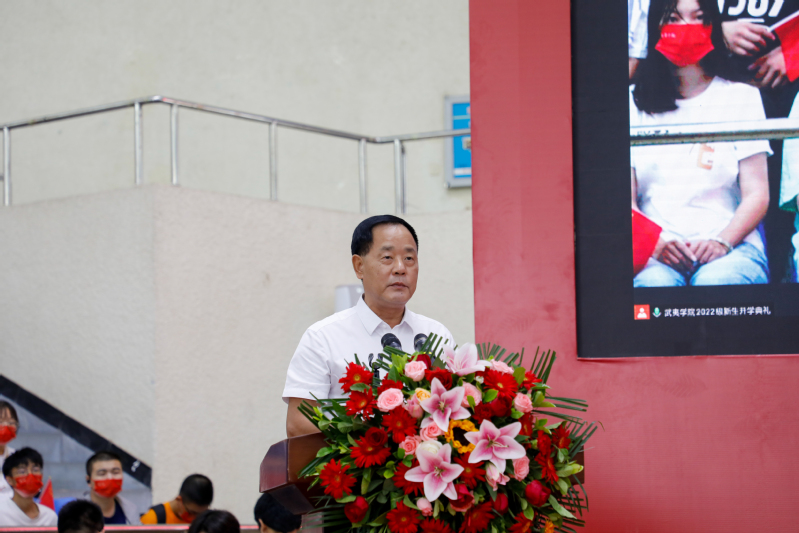 校党委书记庄祥生首先代表全校师生员工对同学们的到来表示最热烈的欢迎,对同学们的信任表示最衷心的感谢,对因疫情原因暂缓来校的新同学表示最诚挚的问候,期盼他们能早日平安顺利到校,向陪伴他们一路成长的亲友与师长们致以最崇高的敬意。庄祥生指出,开学典礼是学校薪火相传的标志,借此机会与全体新同学一起探讨三个问题:一是作为新时代的大学生,同学们要用心理解大学之道。大学是文明的殿堂,以文明的方式传达文明的理念、文明的知识,培育文明的人。我们是中国共产党领导的社会主义大学,社会主义大学是什么?习近平总书记给出了明确的答案,是立德树人、培养人才的地方,是青年人学习知识、增长才干、放飞梦想的地方。我们的任务就是要“培养担当民族复兴大任的时代新人”“培养德智体美劳全面发展的社会主义建设者和接班人”。二是作为新时代的武院人,同学们要用心感悟武院内涵。武夷学院是朱子创办武夷精舍的传承者,创办于1958年这个新中国百业待兴、万众奋发的创业年代,64年来,学校始终坚持艰苦创业、奋发有为,旧貌换新颜;始终坚持深化改革、守正创新,今朝胜往昔;始终坚持立德树人、传道授业,桃李满天下。在武夷学院里,可以领略各领域最优秀学者老师的言传身教,选择启迪心智的课程、聆听深邃前沿的讲座、投身洞察社会的实践、倾情探索未知的研究、参与拓展视野的国际交流、沉浸于丰富多彩的校园文化生活。所有这些都将是同学们成长的养分和创造力的源泉。三是作为新时代的接班人,同学们要用心把准人生航向。校训既是一个学校办学理念、治校精神的反映,也是一所学校教风、学风、校风的集中表现。学校以朱子的“涵养穷索,致知力行”之精神为校训。“涵养”即修身养性,懂道理、明事理、知进退。“穷索”即苦心思索,反复探究。“致知力行”即致力于获取知识并努力付诸实践。同学们要“涵养”家国情怀,自觉把个人理想同祖国的前途和民族的命运紧密联系在一起,立大志、明大德、成大才、担大任,与时代同行,与祖国同步,坚定理想信念;要锻造“穷索”本领,敢于质疑、善于思考,敢为人先、善于突破,不断提升自己的思辨力、学习力、创造力,成就真学问、练就真本领,不断追求卓越;要增强“致知”定力,建构广博精深的知识体系,深入探究科学之真、工程之道、人文之善、艺术之美,为成长为堪当民族复兴大任的时代新人夯实能力之基;要保持“力行”韧劲,在学习求索的攀登之路上不断创造新纪录,在博览群书的积淀中不断收获大能量,在投身各类竞赛和实践中不断修炼真功夫,绽放青春光彩。庄祥生衷心祝愿同学们在武夷学院快乐学习、健康成长、幸福生活,成就属于自己的美好未来。