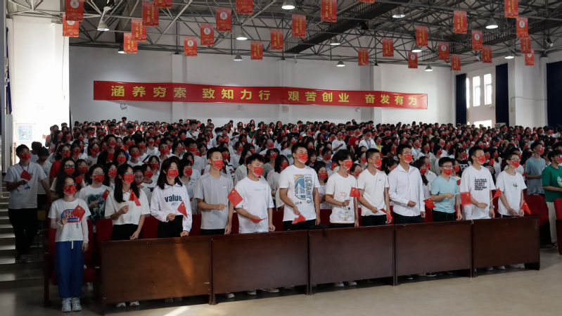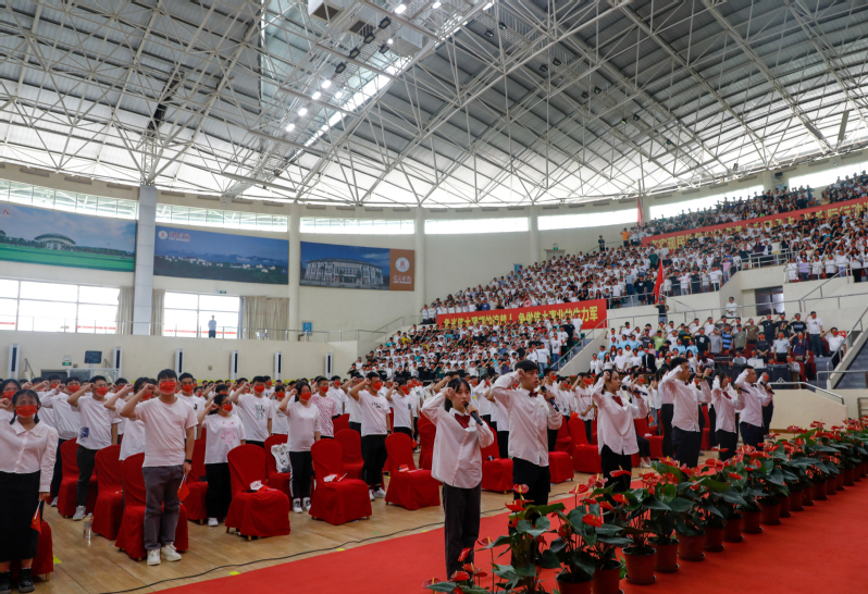 在6名优秀在校生代表的领誓下,全体新生发出“强国有我,请党放心”的铿锵誓言。