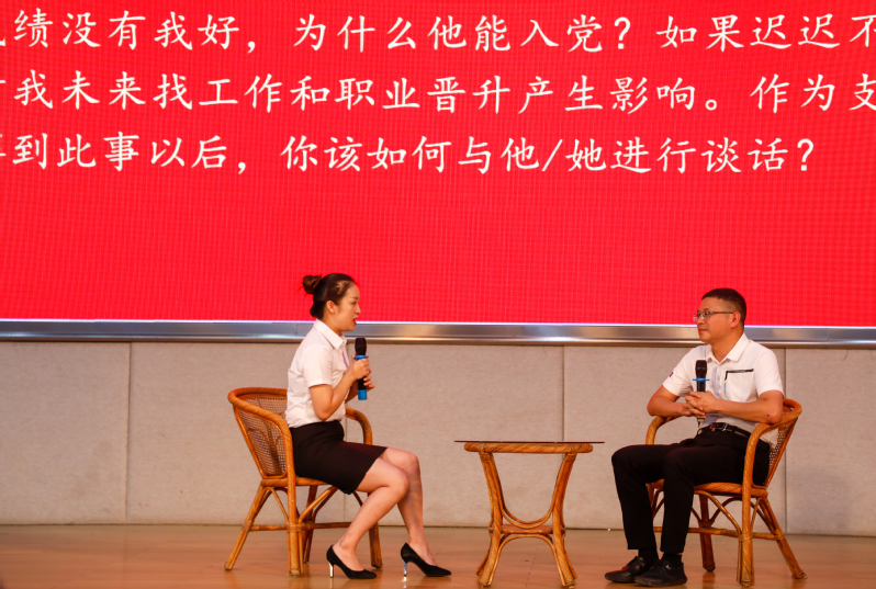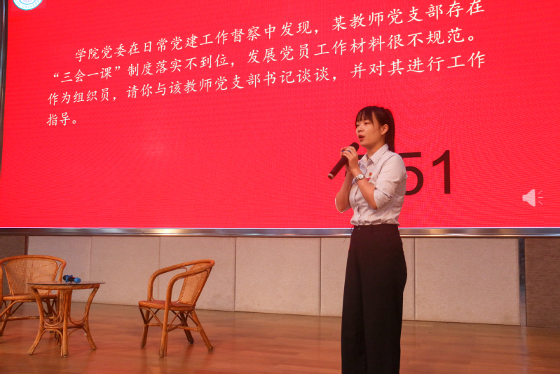 大赛共分三个阶段,第一阶段以党务测试为主,第二阶段以主题党日活动策划和微党课的形式展开。经过两轮的激烈角逐,10 名选手脱颖而出进入第三阶段的案例分析和谈心谈话比赛。各参赛选手结合自身工作实际,用思维清晰、逻辑合理的案例分析和讲究方法、注重交流的谈心谈话,展现了我校基层党务干部良好的理论素养、精神面貌和作风形象。