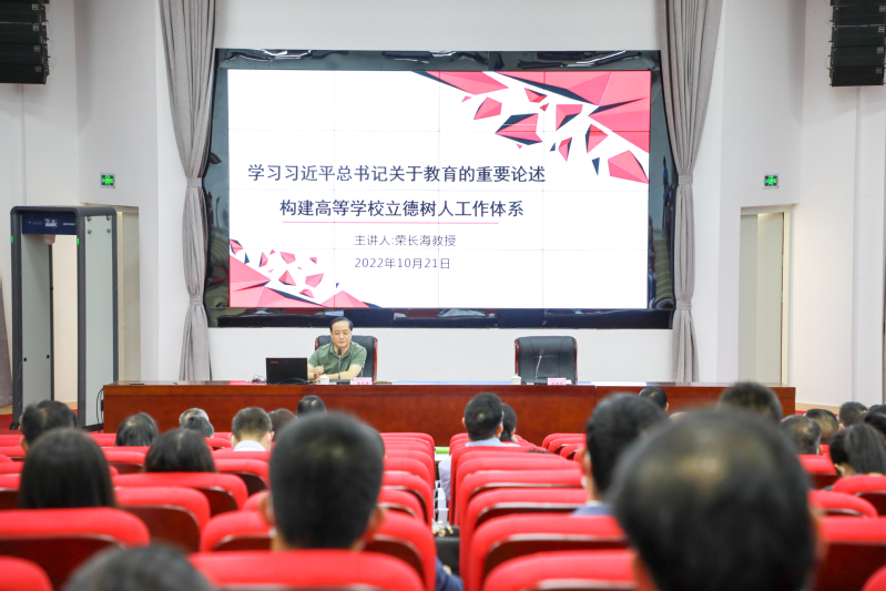 荣长海结合学习贯彻党的二十大精神,从“习近平总书记关于教育的重要论述”“教育部领导对中国教育的新认识”“高等学校立德树人工作体系的思考”等方面进行了深入阐释。报告具有高度的政治性、前沿性和深刻的思想性、学理性。