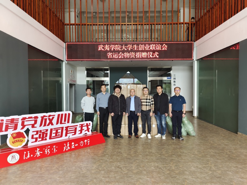 本次捐赠由我校大学生创业联谊会牵头发起,著茗(武夷山)茶业有限公司、武夷山木子文化艺术有限公司、福建三简茶界科技有限公司、武夷山茶圈大魔王茶业有限公司、武夷山锐创教育科技有限公司等5家校友企业,为我校省运会志愿者活动捐赠价值近7万余元物品。