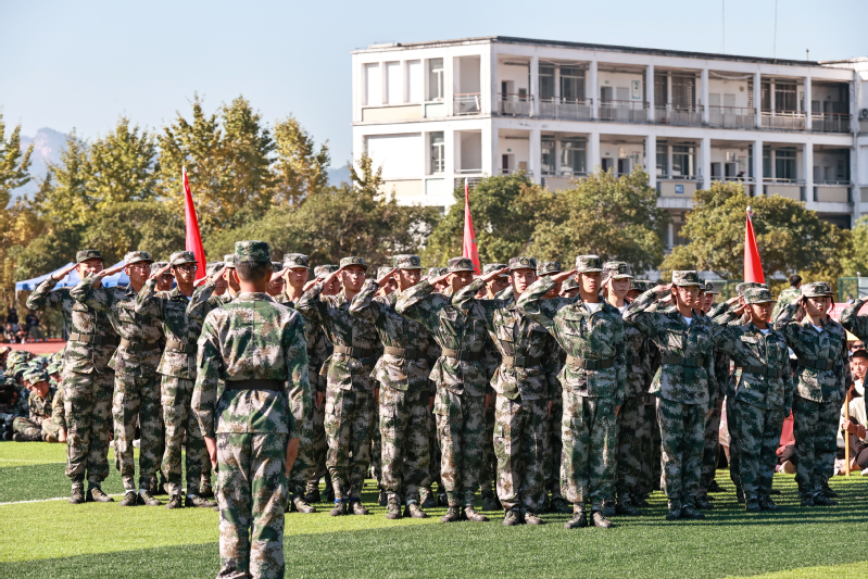 近日,我校2022级新生军训工作圆满结束。此次军训紧扣立德树人根本任务,扛起铸魂育人使命,充分发挥军事技能教学的课堂主体作用,进一步深化国防教育,弘扬爱国主义精神、艰苦奋斗精神,打造新时代大学生军营风采“开学第一课”。军训教官严格要求、悉心施教。参训学生团结协作、刻苦训练,展示了高昂的士气和良好的精神风貌。