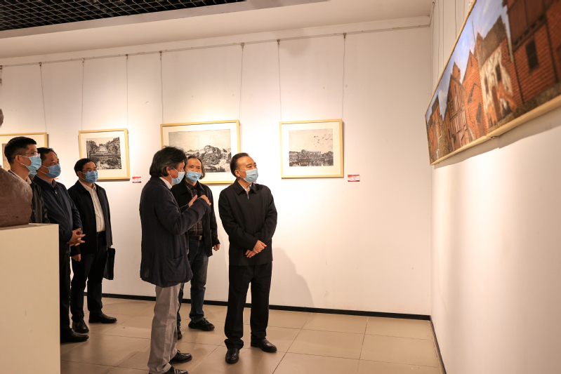 在艺术学院展厅,张彦参观了学习贯彻党的二十大精神美术作品展,他欣赏着一件件精美的作品,不时表示赞许。他指出,要结合党的二十大精神,坚持以人民为中心的创作导向,发挥学科专业人才优势,鼓励师生创作出更多更好的增强精神力量的艺术精品,进一步推进文化自信自强。