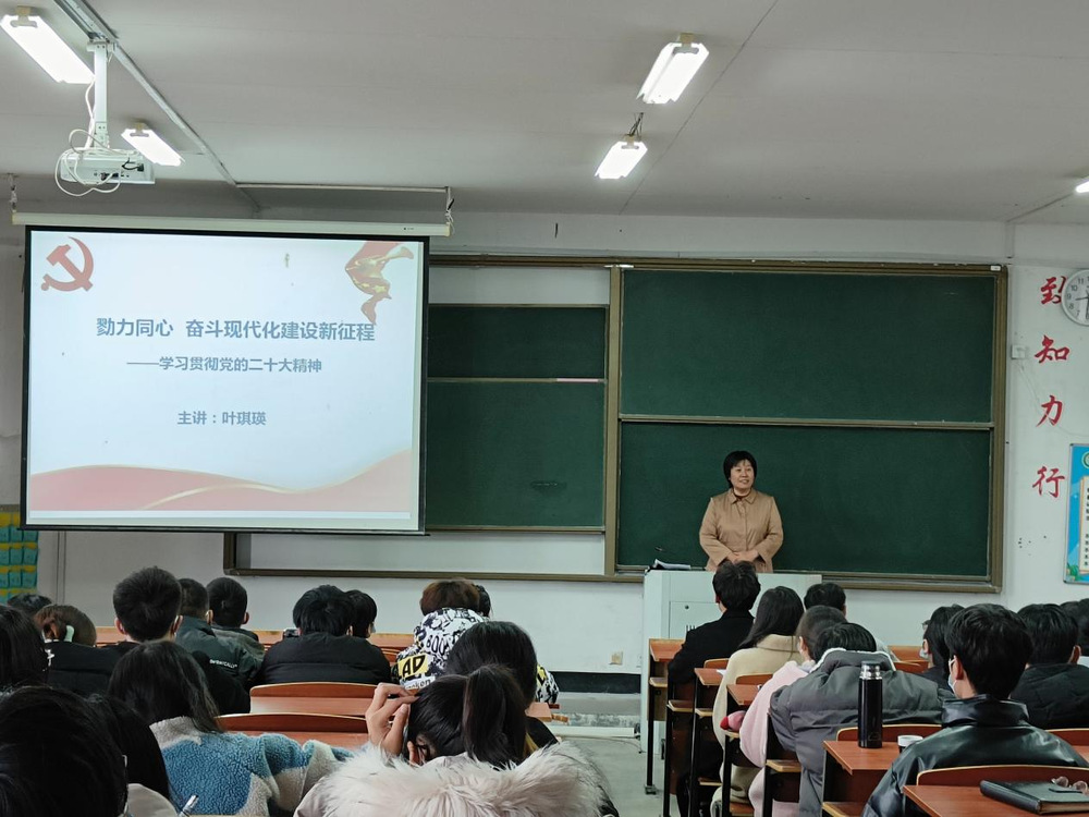 12月1日,校党委学习贯彻党的二十大精神宣讲团成员,马克思主义学院副院长叶琪瑛副教授为生态与资源工程学院全体师生党员开展专题宣讲。叶琪瑛以《勠力同心,奋斗现代化建设新征程》为题,从“党的二十大主题”“中国式现代化,人类文明新形态”“勠力同心,奋斗现代化建设新征程”等三个方面深入浅出地讲解了党的二十大精神。