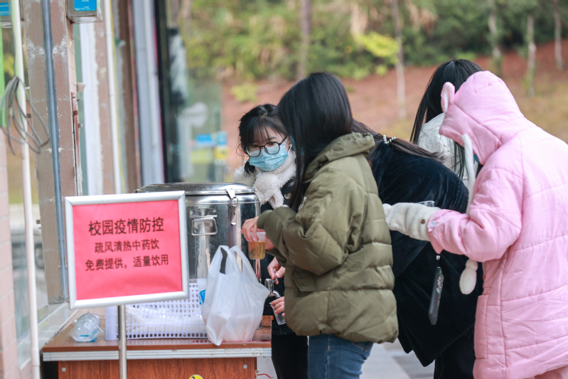 校党政办公室、学生工作部联系地方公交公司,调度4辆大巴,开通从学校开往武夷山高铁北站的“专线车”循环接送,有序组织返乡学生“出校门”“上车门”“到站点”,降低途中感染风险。后勤管理处采购防疫用品,为返乡学生发放口罩146000余个,熬制防疫中药饮,免费提供给广大师生饮用。教务处结合实际调整做好期末教学工作安排和期末考试工作部署,为学生留足学习和复习时间顺利返乡,保障线上教学和考试质量。学生工作部发起2023年寒假致全体学生及家长的一封信,开通寒假心理支持与援助热线;就业指导中心通过微信公众号和学校就业群组实时发布招聘信息,并开通职业规划与就业指导热线,助力2023届毕业生顺利就业。宣传部通过校园网、微博、微信公众号等平台推送返乡途中防疫常识,并与校防控办向全校师生员工发出“全员佩口罩”的倡议。机关党委组织党员志愿,在校门口值守,引导学生有序离校,并提醒做好个人安全防护。