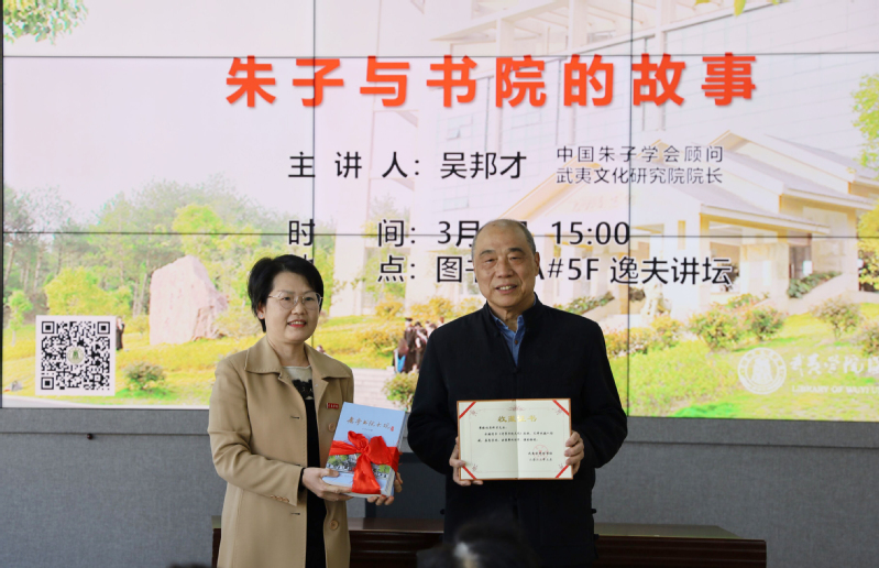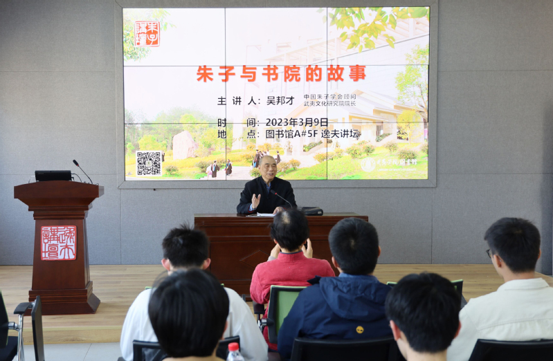 3月9日,校图书馆和朱子学研究中心联合主办朱子文化专题讲座,邀请校党委原书记吴邦才主讲《朱子与书院的故事》,朱子学研究中心研究员张品端主持。