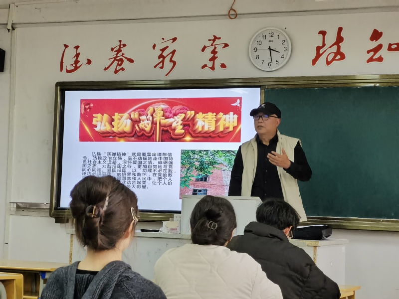 3月30日,离退休第二党支部书记张国林以“回顾两弹一星故事,强化党员责任担当”为题,为人文与教师教育学院第四党支部学生党员上了一堂生动的党课,带领学生党员探秘两弹真迹,寻找强国历史。